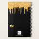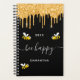 Décoré avec des bees jolies, souriantes, jaunes et noires. Un arrière - plan noir chic et une parties scintillant faux or goutte, la peinture goutte à goutte. Script en lettres blanches avec swashes et texte : Bee Happy. Personnalisez et ajoutez votre nom et une année. Parfait pour l'école, le travail ou l'organisation de votre vie personnelle/familiale.