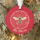 Cette décoration festive ornementale présente une abeille royale sur un cercle de nid d'abeille, avec les lettres Bee Joyeux en dessous. Ce design est un hommage à notre culture d'abeilles si importante tout en envoyant de joyeux voeux. Ce design est or et noir sur un arrière - plan rouge.