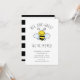 Faire-part amusante avec une adorable abeille avec le dicton mignon "Be Our Guest" posé sur un arrière - plan blanc. Retournez notre nouvelle carte d'adresse pour voir un arrière - plan à rayures noir et blanc de coordination.