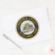 Les bourdons volent autour d'une ruche à skep vintage au centre des étiquettes de bocaux de miel avec le texte rustique "dans la ronde" pour ajouter le nom de votre entreprise apicole et les coordonnées. Entrez le poids net et le type de miel, de miel infusé, de cire d'abeille ou d'autres produits provenant du patio. © dotpattern