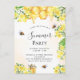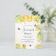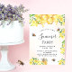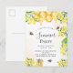 Une invitation à la fête estivale avec un arrière - plan blanc et doré. Décoré d'abeilles bourdonnantes, de miel fondu et de nid d'abeille aux fleurs jaunes, de fleurs et d'un pot de miel. Personnalisez et ajoutez un nom et des détails du parti. Lettres dorées et noires. Parfait pour une fête d'été ou d'automne. Retour : conception de carte postale. Conseil : Si vous ne voulez pas qu'il ressemble à une carte postale, cliquez sur customiser, allez à l'arrière et retirez le séparateur et le timbre postal.