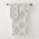 Elevate your bathroom decor with our Glam Beige & White Quatrefoil bath towels, featuring a sparkling pattern that adds a touch of sophistication.