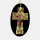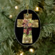 Bel ornement en céramique, avec l'illustration numérique d'une croix florale élégante, sur un arrière - plan noir. La belle croix pour votre arbre de Noël ou même l'emploient année autour comme décor de traction ou de mur de fan. Fait un cadeau très beau.