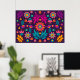 De belles fleurs lumineuses sur un arrière - plan sombre font ressortir cette affiche d'art populaire.