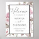 Bel et chic Pastel Blush Pink Watercolor Rose Bouquet floral avec typographie de script moderne et Affiche de bienvenue Mariage Arrière - plan blanche.