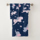 Des éléphants roses et gris, mignons, de style dessin animé, dans un motif transparent sur un arrière - plan bleu marine.
