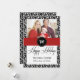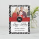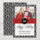 Un design spectaculaire avec un arrière - plan abstrait noir et blanc, un ruban rouge gras et un cercle monogramme au centre. Les mots "Joyeuses Fêtes" sont préimprimés sur le devant.