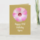 Cette carte de 101e anniversaire pour elle présente une belle fleur d'hibiscus rose et blanc. Les mots "Joyeux 101e anniversaire (Nom)" apparaissent sur le devant pour vous permettre de customiser le nom de la dame d'anniversaire. A l'intérieur, un joli verset pour un 101ème anniversaire. Copyright Kathy Henis