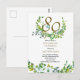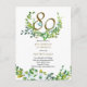 Cette invitation d'anniversaire élégante et raffinée avec des feuilles vertes et du feuillage ainsi que des fleurs blanches avec une touche de bleu est parfaite pour une fête d'anniversaire de 80 ans pour une mère ou un père, des grands-parents, un collègue ou autre. Modifiez simplement le texte pour répondre à vos besoins exacts. Elle comporte des polices modernes manuscrites et de calligraphie en or et noir.
