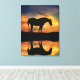 Une belle toile d'une silhouette de cheval avec un lever de soleil du sud-ouest et réfléchie dans un étang d'eau calme.