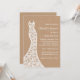 Une robe mariage de dentelle romantique accentue cette invitation à la douche nuptiale sur un arrière - plan burlap de couleur moyenne illustré. Cette invitation est affichée sur le papier de base; cependant, je recommande le poids et la texture du papier de lin