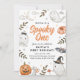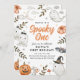 Adorable aquarelle Invitation d'anniversaire d'Halloween avec des fantômes sucrés, des citrouilles et des accents éffrayants pastel. Parfait pour les soirées costumées pour enfants et les fêtes d’automne.