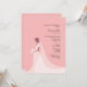 Une élégante invitation avec une belle mariée dans une longue robe mariage en dentelle. Dans sa main, elle tient un bouquet floral blanc.