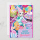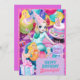 Cette invitation d'anniversaire présente un thème de sirène délicieux qui capte l'imagination. La carte présente des couleurs vibrantes et des illustrations charmantes de magnifiques sirènes dans différentes teintes.
