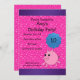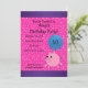 Invitation de 5" x 7" avec mignon cochon rose étoiles arrière - plan, avec bande violette et un faux cercle de pétoncle bleu parties scintillant pour changer l'année d'anniversaire pour 1er, 2ème, 3, 4, 5, 6, 7, 8, 9, 10, 11, 12, 13 14, 15, 16, 17, 18, 19 20, 30, 40, 50, 60, 70, 80, 90