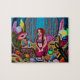 Un puzzle parfait pour inspirer n'importe quel artiste, que ce soit au bord de la plage ou pas. Cette belle image représente une sirène à la recherche d'inspiration dans son atelier d'art/grotte. J'ai surtout utilisé des marqueurs de copique et des crayons colorés pour colorer la pièce originale, mais pour les cristaux les plus proches de l'entrée de la grotte, j'ai utilisé des pastels à la craie.
