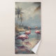 tableau botanique avec flamants roses dans l'eau entouré de palmiers et de fleurs tropicales