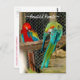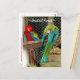 Photo de deux perroquets colorés nettoyant leurs plumes, affichée sur une carte postale. Photographié en Floride.