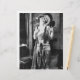 Grande vieille photo d'une belle femme dans une robe scandaleuse style flapper des années 1920, regardant dans le miroir. Super tenue de style d'époque avec casquette et plumes. Photo vintage prise dans les années 1920. Photographe inconnu.