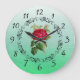 Belle Rose bordeaux Sage Green Round Horloge