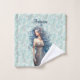 Une belle sirène aux longs cheveux bleus flottants sur fond de sarcelle avec un motif de coquillage et de fronde.
