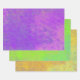 Ces belles feuilles d'enveloppement cadeau viennent dans un pack de 3 couleurs différentes : chacune d'entre elles avec une magnifique oeuvre arrière - plan aux couleurs tourbillonnantes qui rappelle le papier marbré. Vous en obtenez un chacun : violet, vert citron et doré.