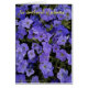 De beaux pétunias de violet bleu sont imprimés sur cette carte de voeux verticale. Merveilleux dans les tons bleus et violets ! Le texte dit : "L'odeur douce de Petunias..." Customisez ceci en utilisant les nombreux styles et couleurs de police de Zazzle. Cette image peut être transférée vers d'autres produits. Si vous avez besoin d'aide, n'hésitez pas à me contacter, et je serai très heureux de vous aider. Vous pouvez me contacter via ma page Facebook Wolf Moon Art and design. Vous pouvez trouver le lien sur ma page d'accueil dans mon magasin. Regardez le bas de la page où il est dit "connectez-vous avec Wolf Moon Art and Design". Photographie originale copyright 2017 par Karen Coffelt.