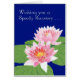 Une jolie carte de voeux Get Well, avec deux nénuphars roses et des lilypads sur un arrière - plan bleu profond, d'une aquarelle peinte à la main par Judy Adamson. Vous pouvez personnaliser le message intérieur de cette carte si vous le souhaitez.