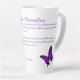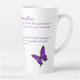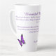 Dimensions : Grande Mug en latte Disponible en 12 onces ou 17 onces Dimensions : 12 onces : 3,5 po D x 4 po H 17 onces : 3,5 po D x 6 po H Forme conique avec poignée en forme d'oreille Micro-ondes et lave-vaisselle coffre Construction céramique forte