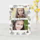Cette belle carte de modèle photo cadre est parfaite pour vos deux photos. Souhaitez Joyeux Noël et envoyez des bénédictions avec cette carte d'aquarelle douce avec un cadre doré autour des bords extérieurs des photos. Branches à feuillage persistant, saintes, pins et baies apportent une touche chaleureuse à cette belle carte de vacances. Ajoutez votre nom ou vos noms en bas pour un accueil de vacances vraiment personnel.