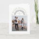 Envoyez "Bénédictions de Pâques" à vos amis et votre famille avec cette carte de voeux simple mais élégante. Une police de serif traditionnelle et une illustration vintage de couronnes florales créent une forme d'arc à la mode. Une grande photo du client est placée en dessous, entourée d'une délicate bordure grise. Le dos de la carte est muni d'un simple motif crosshatch avec un arrière - plan de couleur de coordination.