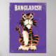 Bengladesh Vintage, affiche de voyage. Imprimé de vacances de tigres bangladais.
