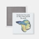 Heureux les doux, car ils hériteront de la terre! Une aquarelle d'un beau poisson de betta bleu et or orne cet aimant !