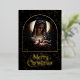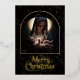 Cette carte de Noël en feuille d'or présente une représentation sacrée de la Vierge Marie tenant tendrement l'enfant Jésus, encadrée dans une fenêtre cintrée d'élégance divine. Leurs auréoles brillent d'une chaleur céleste, jetant une lumière sur les motifs floraux ornés qui les entourent. La robe bleu foncé de Marie, ornée d'accents dorés, évoque à la fois la royauté et la dévotion, tandis que le regard levé du nourrisson parle d'innocence et de promesse éternelle. Les mots « Joyeux Noël » scintillent d'un or royal, ancrant la carte dans une révérence festive. Un souvenir intemporel pour ceux qui célèbrent la saison comme un retour spirituel au foyer.
