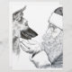 Beau stylo original et encre de Père Noël et German Shepherd par Keith Knudson