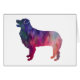 Vue latérale de la race de chien de Australian Shepherd remplie de motif géométrique violet coloré. Cette silhouette peut également représenter : Aussie, Border Collie, Welsh Sheepdog, English Shepherd, McNab, cap Nouvelle-Zélande, Atlas Shepherd, Mountain Shepherd, Australian Kelpie, Berber, Berger bohème, Berger croate, Drent, Drenthe, Hollandais Gundog, Hollandais Partridge Dog, Mudi, Old Farm Collie, tish Collie