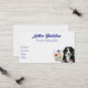 Cartes de visite de chiens avec conception de chiens de montagne bernois. Cartes gris pâle avec modèles de texte bleu violet foncé. Inclure un nom le long du haut dans le script avec une ligne en dessous pour le service / la profession. Le reste du texte est aligné à gauche pour les coordonnées. Le beau chiot moelleux se trouve parmi quelques fleurs sauvages dans le coin inférieur droit. Reverse est gris clair solide.