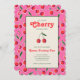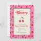 Ces invitations seront la cerise sur le gâteau de la fête d'anniversaire de votre petite fille. Parfaits pour un anniversaire d'été, ces invitations présentent une adorable illustration de cerise rétro en rouge vif sur un arrière - plan rose vif.