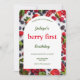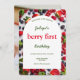 c'est une invitation photo avec des baies et une photo pour bébé filles