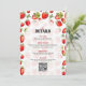 Ce joli baby shower Party détails design dispose d'un cadre de fraise rouge adorable sur un blanc avec typographie noire personnalisable.