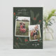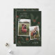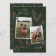 Une carte de voeux de Noël avec 2 photos inclinées arrangées avec du feuillage dessiné à la main et des baies éparpillées. Ce design utilise une palette de couleurs riche et traditionnelle de tons verts et rouges et un script élégant et une police serif classique. L'arrière de ce design a une autre photo optionnelle au-dessus d'un beau motif botanique. Ce modèle est facilement personnalisable, il suffit de cliquer sur modifier et échanger la photo et l'information à votre propre.