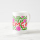 jolie porcelaine, bonne dimension effet brillant bien dans l'ensemble. Le motif et les couleurs sont réussis.Je trouve néanmoins dommage de ne pas occuper tout l'espace avc le motif car la partie rouge au dos de la tasse est trop présente et pas intéressante visuellement.