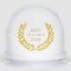 Elegant golden Best Teacher Ever and laurel wreath on white Snow Globe. Name and more text to be personalized on the back side. Text can be personalized for graduations, coach, birthday, new job, promotion, anniversary and more.