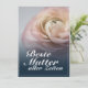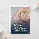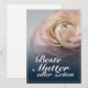 Die Nahaufnahme einer pinken Rose auf blauem Hinergrund und Muttertags- oder Geburstagsgrüßen. Die restliche Fläche der Karte ist frei gestaltbar. deutsch