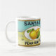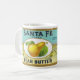 Un étiquette vintage pour Père Noël Fe Pear Butter réutilisé sur une tasse.