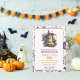 Libérez l'esprit éffrayant avec ces invitations enchanteresses à la fête d'Halloween ! Dotés d’un adorable chat ensorcelé à enfiler le casquette d’une sorcière et niché au sein d’un citrouille, ces invitations sauront charmer vos invités. Le design d'aquarelle fantaisiste est bordé de motifs d'Halloween ludiques qui donnent le ton pour une nuit inoubliable. Customisez avec les détails de votre fête pour le rendre vraiment unique.