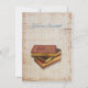 Un Vintage de charme construit un baby shower de bibliothèque. Comprend une pile de livres de contes contre du papier vintage faux usé. Conçues comme une carte de bibliothèque, ces invitations invitent les invités à apporter un livre pour la nouvelle bibliothèque pour bébé.