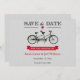 Tendance Enregistrer les cartes Date avec un vélo tandem. Design vintage amusant avec une bannière rouge sur un arrière - plan gris. Aussi disponible en d'autres couleurs. Obtenir la correspondance enregistrer les timbres de date ci-dessous :