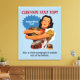 Femme portant un tablier rouillé tenant des jarres de verre de légumes. Couleur arrière - plan personnalisée. Texte personnalisé haut et bas. Bulle d'éclatement personnalisable et amovible avec texte personnalisé.
