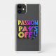 Un design coque iphone dynamique présente le texte "Passion Pays Off" dans un dégradé multicolore. Le texte utilise une police audacieuse et ludique avec un léger effet 3D, projetant une ombre subtile. Vous pouvez choisir entre un arrière - plan blanc propre qui fait apparaître le texte, ou une option transparente qui laisse passer votre téléphone.
